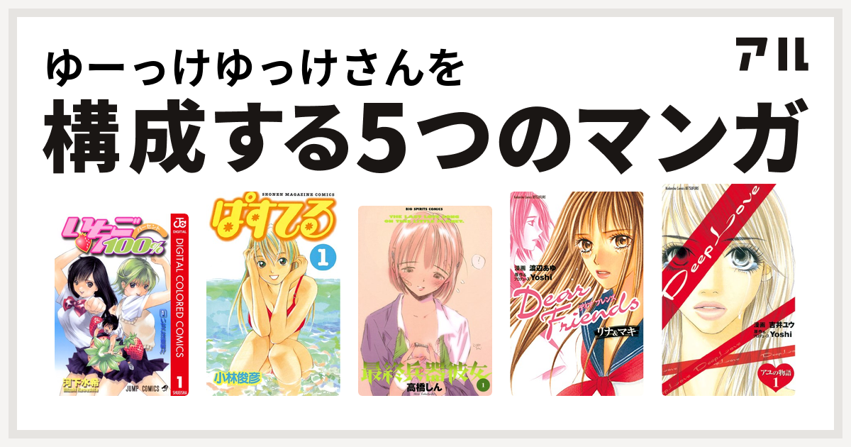 ゆーっけゆっけさんを構成するマンガはいちご100 カラー版 ぱすてる 最終兵器彼女 Dear Friends リナ マキ Deep Love アユの 物語 私を構成する5つのマンガ アル